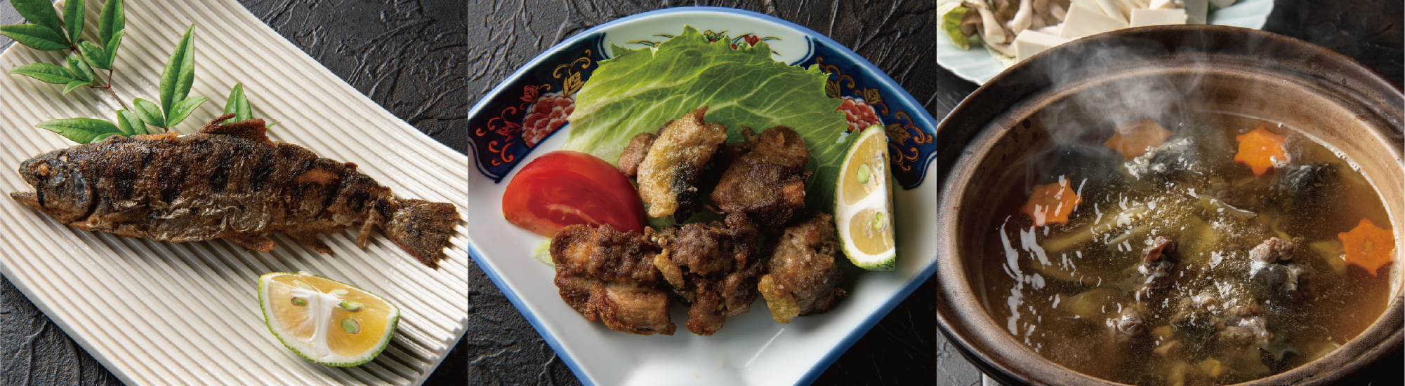 すっぽん、エノハ、どじょうなど、地元ならではの郷土の味をお楽しみいただけます。