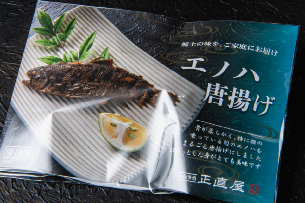 竹田市直入町で養殖のエノハ別名「渓流の女王山女魚」とも呼ばれ、白身でたんぱくな味わいです。由布市阿蘇野産は大型のエノハで、身もふっくらして食べ応えがあります。年間通して阿蘇野産を多く使用します。商品自体にすでに味付けがされており、解凍後そのままお召し上がりいただけます。